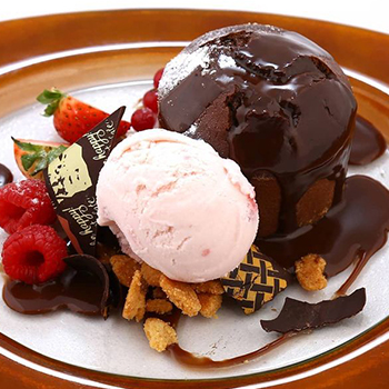 Luxurious of rich chocolate selection , baked and served hot with scope of vanilla ice cream